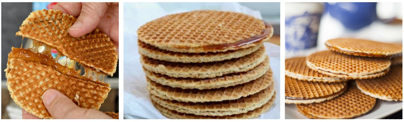 스트룹 와플은 얇게 구운 반죽 사이에 캐러멜 시럽을 넣고 구운 네덜란드 전통 와플입니다. 스트룹 와플은 따뜻할 때 먹는게 제일 맛있으며, 식으면 약간 단단해져 특유의 쫄깃한 식감이 살아납니다. 스투룹 와플은 커피나 차와 같은 뜨거운 음료와 함께 즐기며, 네덜란드를 방문하는 관광객에게 인기 있는 간식거리이자 기념품입니다.